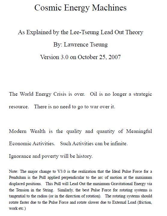 COSMIC ENERGY MACHINES : une théorie de Lawrence Tseung