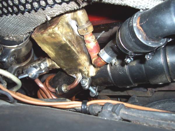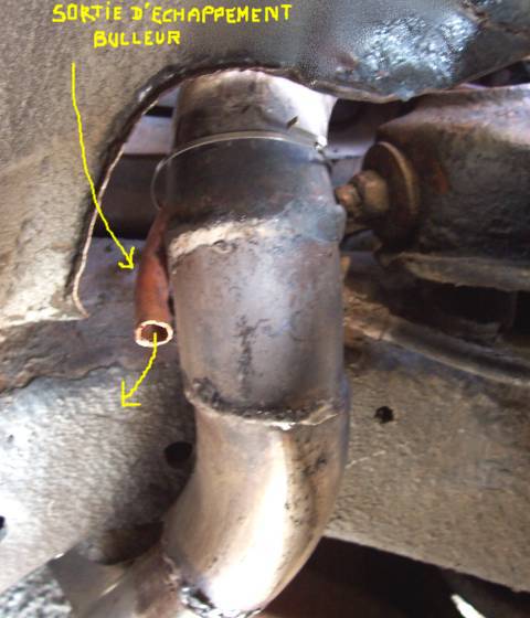Sur la photo on voit en bas du GV à l'intérieur, un morceau de tube en cuivre coupé sur la longueur, et soudé juste au dessus du trou d'évacuation de la condensation; il sert à éviter que l'eau de condensation qui part dans le tube d'évacuation puisse remonter avec la dépression et être aspirée par le réacteur (si démarrage du moteur à froid avec vanne de gaz ouverte).