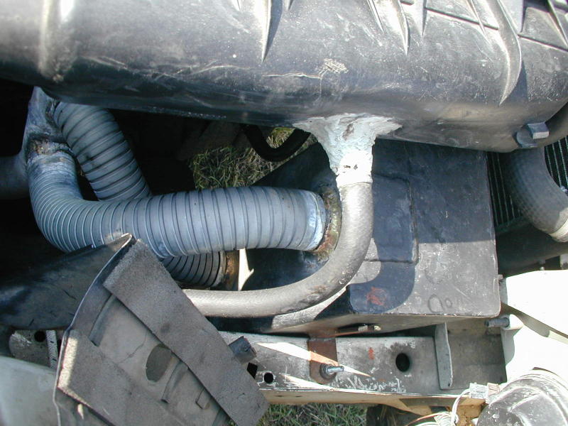 L'échappement a été coupé et ressoudé avec une plaque de métal prise en sandwich. Un tuyau d'échappement souple est impératif car il travaille avec les vibrations du moteur étant donné que la boîte n'est pas solidaire du moteur mais du châssis !