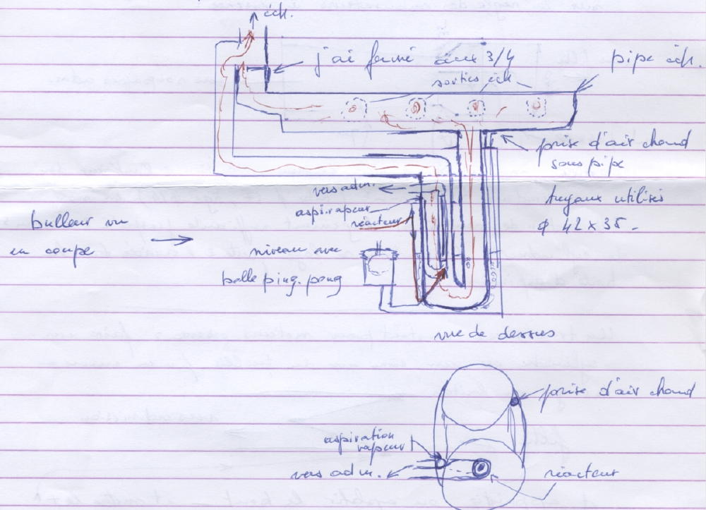 Le bulleur est constitué d'une tôle soudée sur le tuyau d'échappement. Hauteur 20cm. Niveau d'eau 6 à 8 cm.